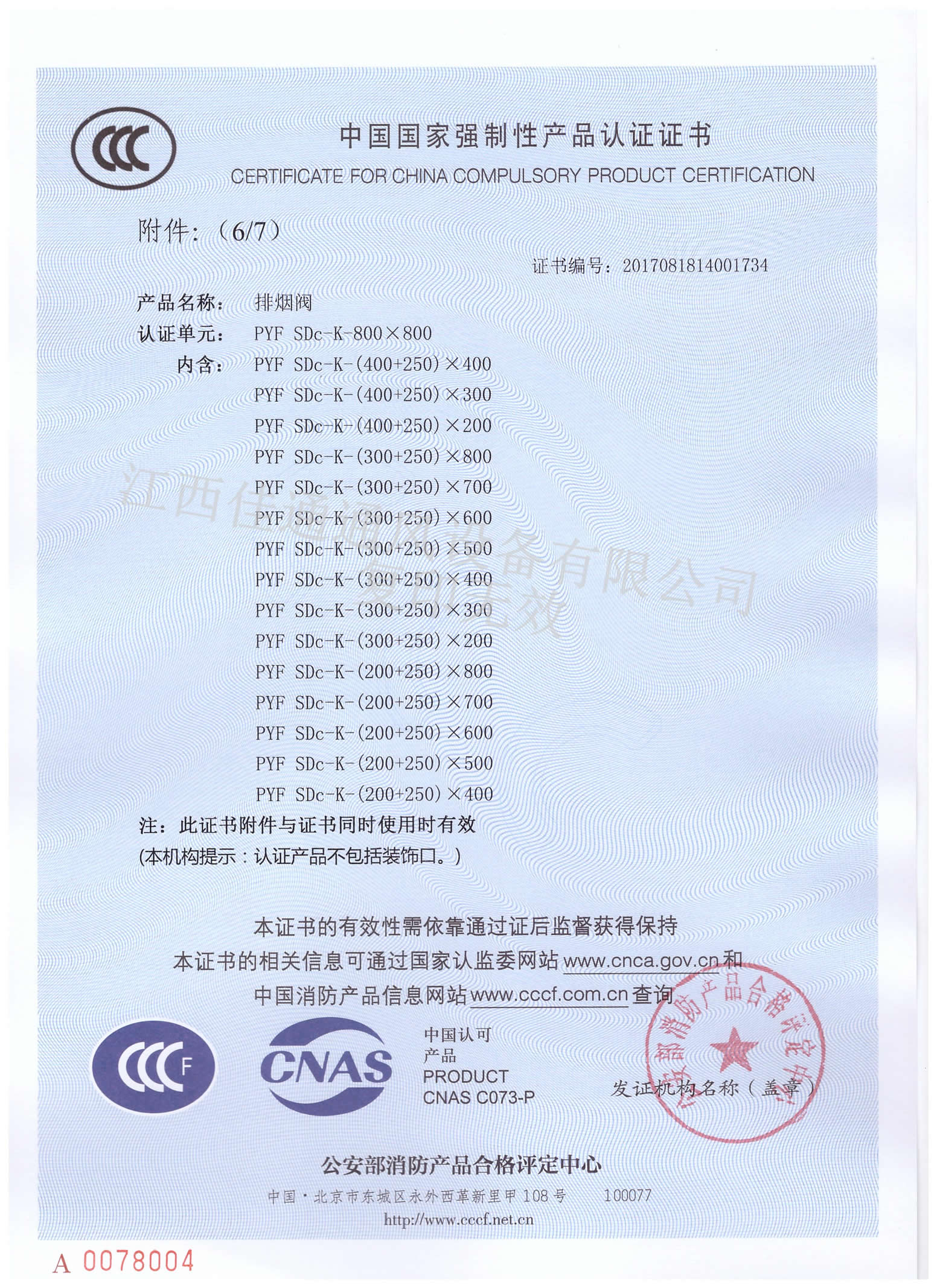 下一条:消防3C认证证书排烟阀800×800(分型5)