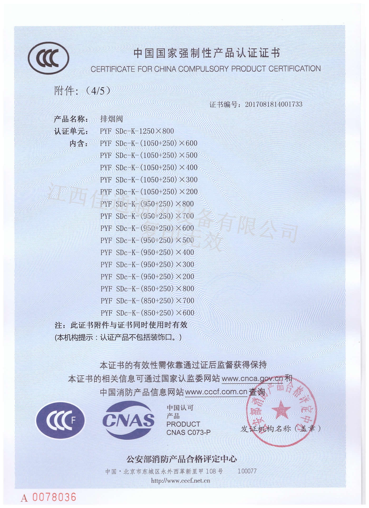 下一条:消防3C认证证书排烟阀1250×800(分型3)