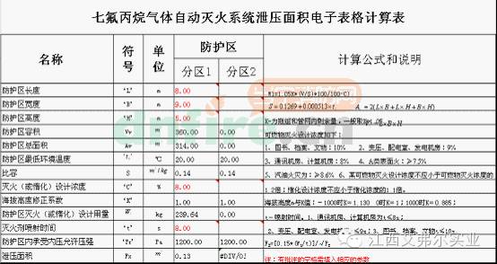 3.3.1七氟丙烷气体灭火系统泄压面积电子表格计算表