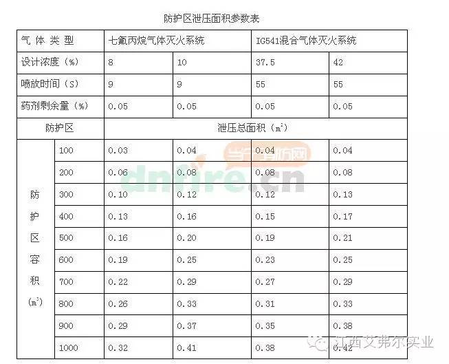 (2)将防护区容积和保护对象的灭火设计浓度带入本表中,便可快捷查得防护区的总泄压面积。