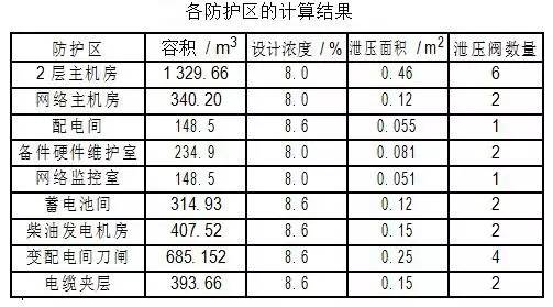 根据规范要求和工程实例的需要,计算防护区泄压口的泄压面积。以七氟丙烷全淹没灭火系统为例,依据《气规》给出的公式和方法计算出结果并选型。根据计算得到的各个防护区所需要的泄压面积,参照不同型号泄压阀的有效泄压面积以及可以安装的位置等因素来选择产品型号和数量。