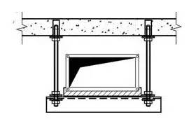 (2)支吊架的固定采用以下几种方法:①膨胀螺栓法。本方法适用于规格较小的风管支吊架的固定。本工程支吊架固定大多数采用此法,通过在楼板、梁柱上打膨胀螺栓固定支吊架。②焊接法。本方法适用于风管规格大,使用膨胀螺栓固定不能满足强度时,采用预埋件焊接固定支吊架。支架固定形式见下图。