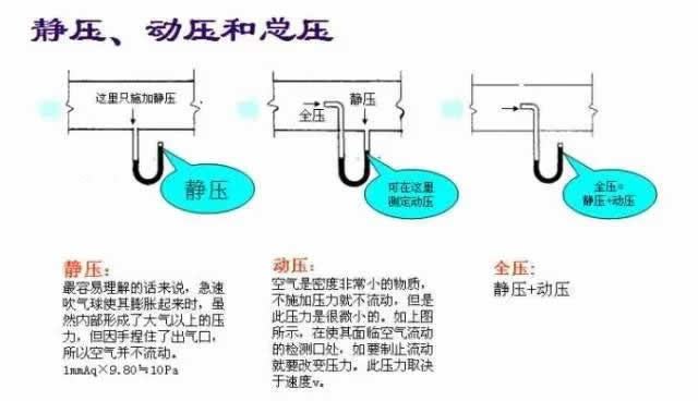在选择空调或离心风机时,常常会遇到静压、动压、全压与余压。根据流体力学知识。流体作用在单位面积上的垂直力称为压力,当空气沿风管内壁流动时,其压力可分为静压、动压和全压。单位分别为mmHg或kg/㎡或Pa。