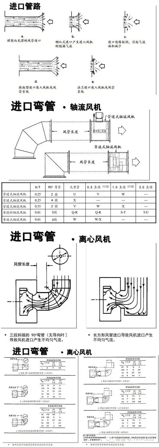 进口风管,进口弯管,进口箱,进口涡流 (旋流或紊流〕,进口导向叶片,整流器,封闭式 (箱形效应〕,有障碍的进口。