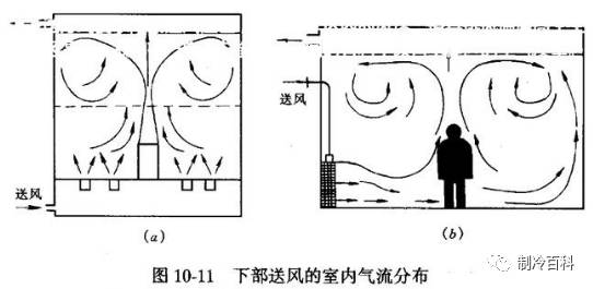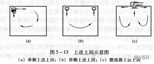 由空间上部送入空气由下部排出的“上送下回”送风形式是传统的基本方式。上送下回的气流分布形式送风气流不直接进入工作区,有较长的与室内空气混掺的距离,能够形成比较均匀的温度场和速度场。