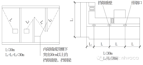2.防区内任何地点到排烟口水平距离小于30m,如下图所示。