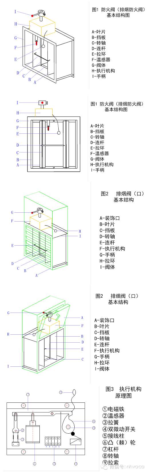 排烟阀的工作原理与防火阀和排烟防火阀相似,但动作方向相反,即排烟阀是动作开启而不是关闭。