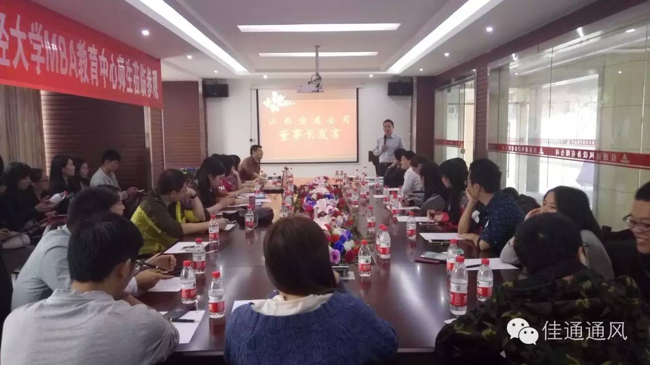 2016年10月16日,MBA2015级2班《人力资源管理》全体选课学生以及工商管理学院副院长宁亮来到江西佳通通风设备有限公司开展移动课堂,了解我公司以及房地产行业的组织绩效管理。