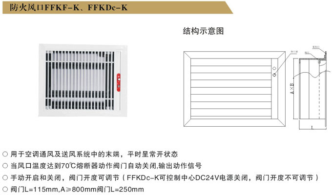 2、防火风口用于通风空调系统的末端,其动作温度为70℃。火灾时需在送排风口隔断火源。