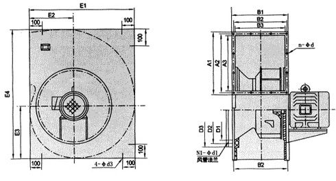 DDL系列离心通风机采用效率较高的前倾圆弧叶型,为多翼式宽叶轮,具有最佳的叶轮直径与宽叶比,空气动力性能优良。A式直联传动采用方形箱体,B5型电机,可以0 °、90 °、180 °、270 °角度自由安装,非常方便用户的选型及安装使用:正式方形箱体电机顶置,使整体变得扁平,结构紧凑,安装简便。本系列风机的显著特点是体积小,风量大,风压高,噪声低,有着轴流风机的风量大,离心风机的风压高、噪声低的优点,是环保通风工程配套的理想产品。适用于单位食堂、饮食店、宾馆酒楼等厨房排油烟送风及工矿企业、娱乐场所、地下室等场合的通风同时也广泛配套使用在粮食机械、化工机械、塑料机械等生产线设备上。